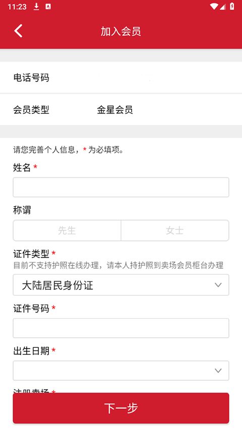 4、按照提示将办会员资料填写完成后点击下一步,完成支付即可