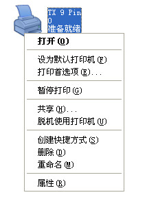 单击:开始→设置-打印机,找到TX 9 Pin 打印机,右击“设为默认打印机