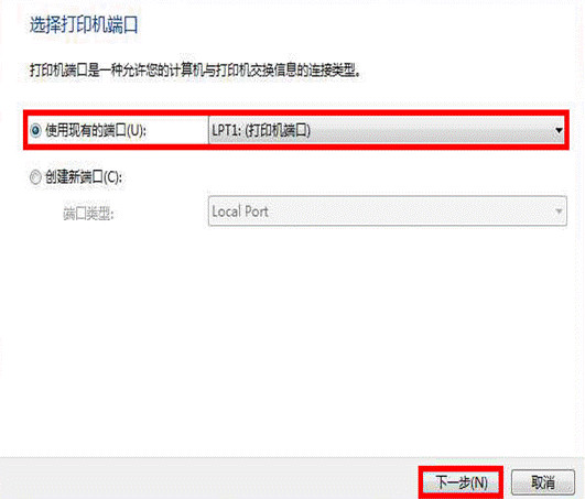 选择打印机端口,点击“下一步”