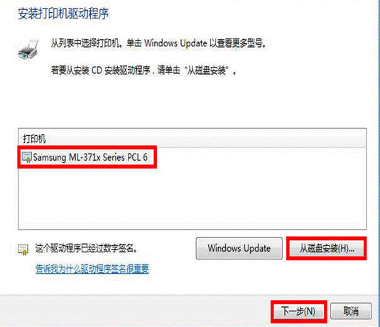 出现打印机型号,点击“下一步”