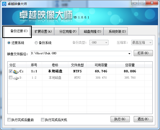 备份还原系统功能,只需要点击还原系统或者备份系统 执行就行了