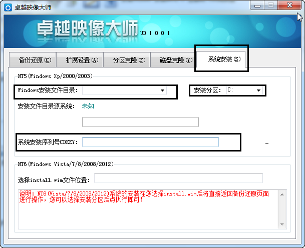 如果有想要装系统,大家只需要找到系统盘路径,选择安装分区,输入序列号就能一键安装系统了