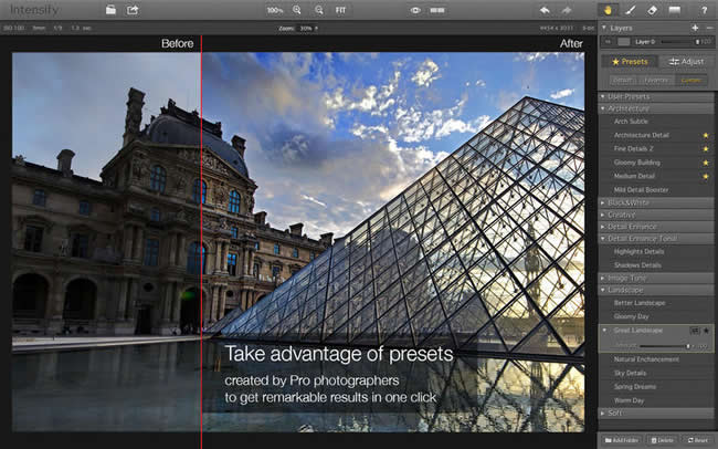 Intensify Pro for Mac作为一个独立的应用程序或插件,可为Adobe Photoshop , Adobe Photoshop Elements, Adobe Photoshop Lightroom and Apple Aperture服务。