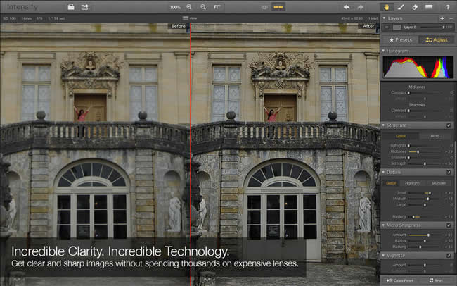 Intensify Pro for Mac的几个工具包含额外的功能。例如,获得了Dehalo的功能和结构微清晰度,增加了柔软功能。