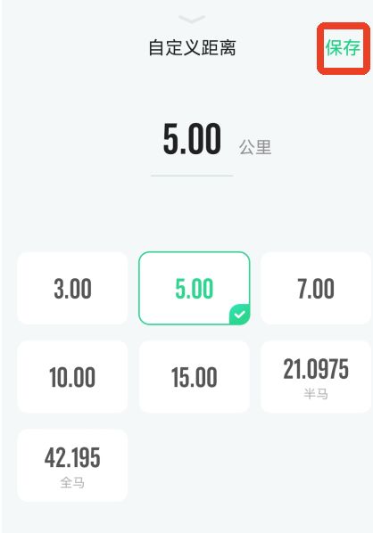 4、就能自己选择公里数,完成之后点击右上角的保存。