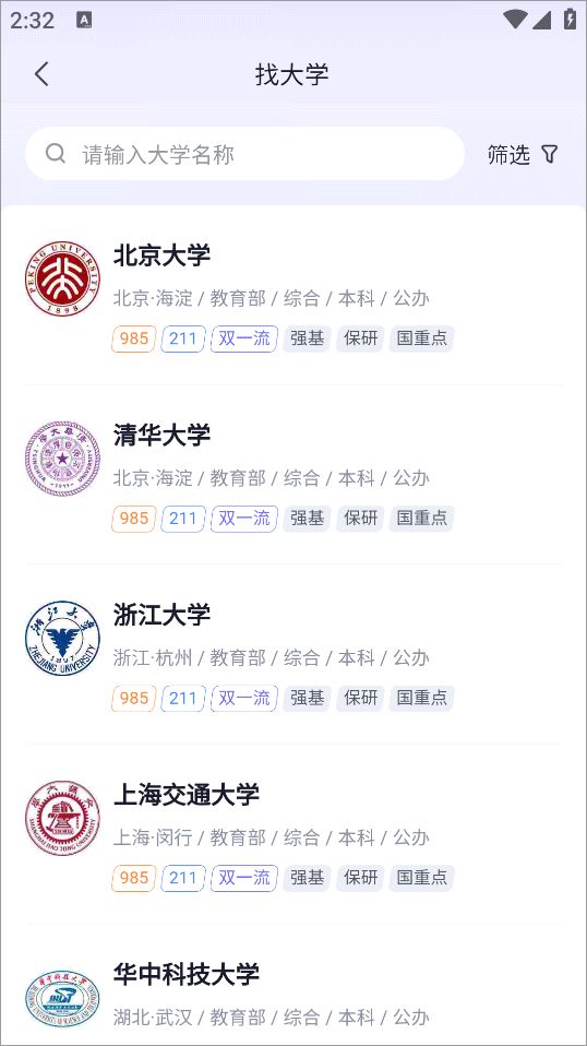 1、进入软件,在首页找到大学院校库和大学专业库。