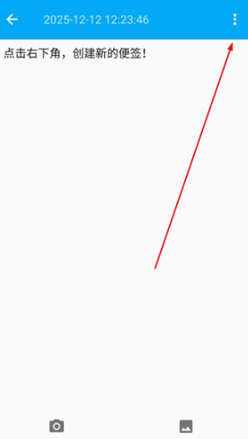 1、打开软件进入主界面,点击右上角菜单按钮,展开功能列表,选择随手记分类,进入对应便签页面。