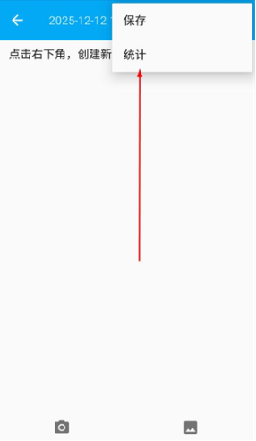 2、在随手记页面点击操作选项展开菜单,选择统计功能,进入便签内容的统计页面。