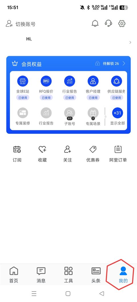 1、进入阿里卖家App后,进入【我的】功能;