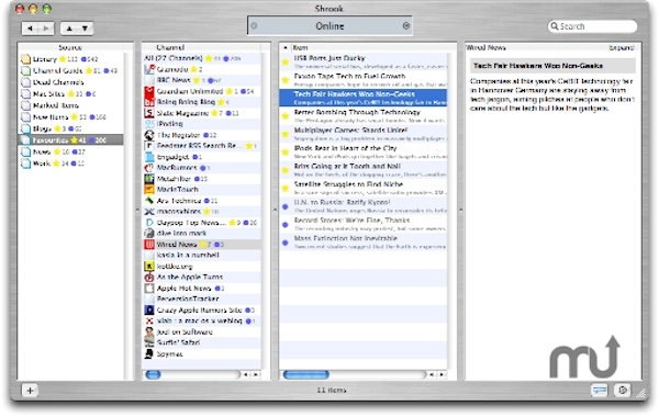 Shrook for mac是一款可以在苹果电脑Mac os平台上使用的非常不错的Mac订阅器,Shrook for mac可以添加任意网站的订阅源,虽然界面设计得有些老旧,但集成了Twitter内容浏览和及时的新文章推送功能让我对她的好感瞬时倍增。需要此款工具的朋友们可以前来下载使用。