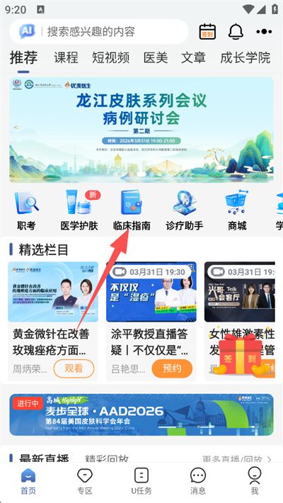 优麦医生APP临床指南查看并收藏方法