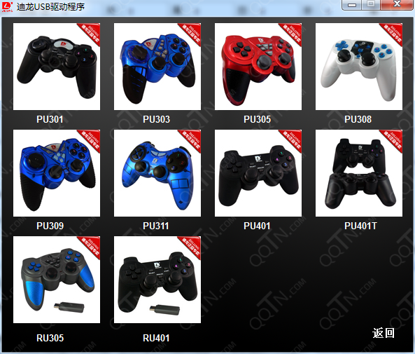 迪龙usb游戏手柄驱动程序通用版,支持迪龙系列游戏手柄、游戏方向盘、转换器/线等产品驱动安装。全面支持windows XP/WIN7,支持的型号包括PU301/PU303/PU305/PU308/PU309PU311/PU401/PU401T/RU305/RU401等型号,正确安装驱动才能正常使用。