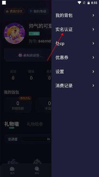 2、然后点击【实名认证】