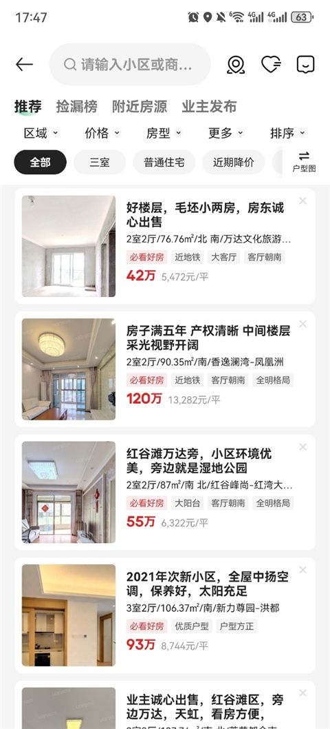 2、现在你所看见的都是二手房信息。