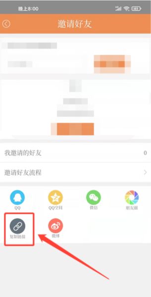进入邀请好友界面,点击【复制链接】进行分享给好友。