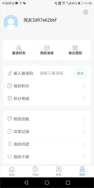 4、【我的】页面可以进行赚取积分,在【积分商城】里进行抵换礼品,并且还可管理用户相关消息和事项