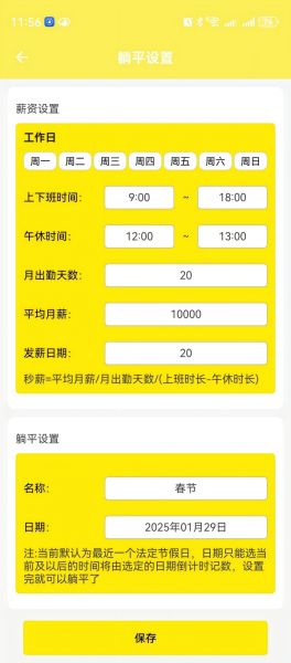 1、每个人的工作安排都不尽相同,MOOYUapp允许用户根据实际情况灵活设置上下班时间及发薪日期。