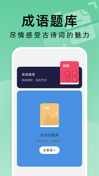 4、学习成语知识和进行习题练习的平台,随时随地通过这一功能进行语言能力的提升和学习。