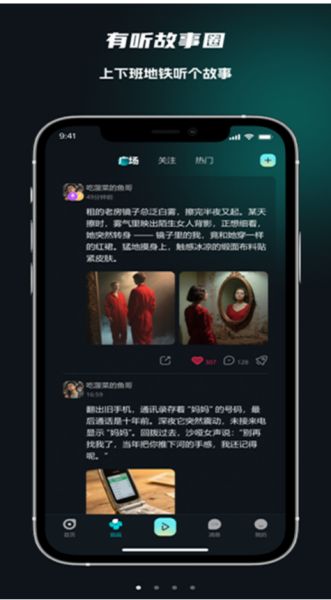 除此之外,有听故事圈软件还有丰富的社区互动功能,你可以在社区分享自己的动态、关注自己喜欢的主播、和志同道合的听友们在广场交流心得,共同探讨有声故事,有兴趣的小伙伴可以来下载体验。