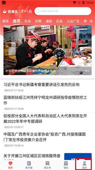 1、下载并安装本站提供的在崇左app,打开点击底部的菜单栏【我的】