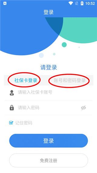 2、然后可以看到登录的方式有账号和社保卡登录;