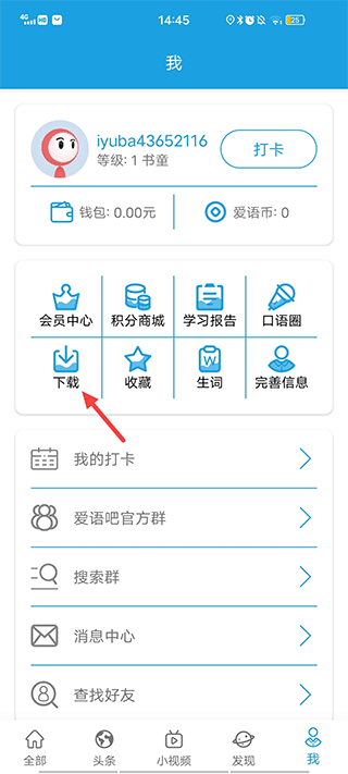 2、在“我”的界面,点击下载即可查看下载好的学习视频。