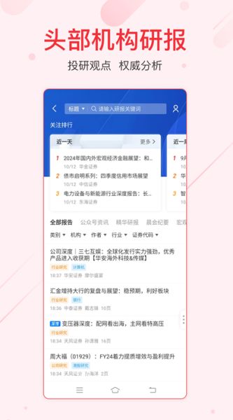 2、研报中心:海量机构研报,深入研究市场概念、行业、公司,在线浏览便捷分享;