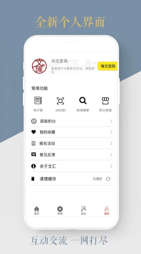 注册用户可通过每日签到、阅读文章、观看视频、推荐文汇APP给好友等互动功能获取积分。