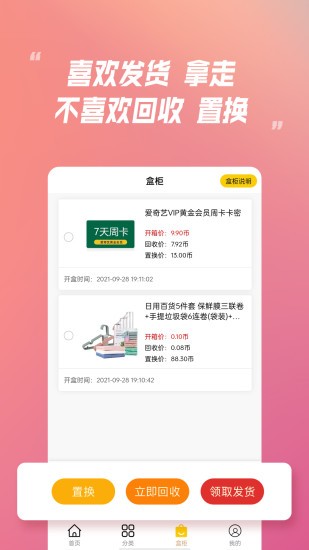 在线拆盒、喜欢邮寄、不喜欢回收、还有奖品等你抽,抽出大奖,帮你实现您的心愿。