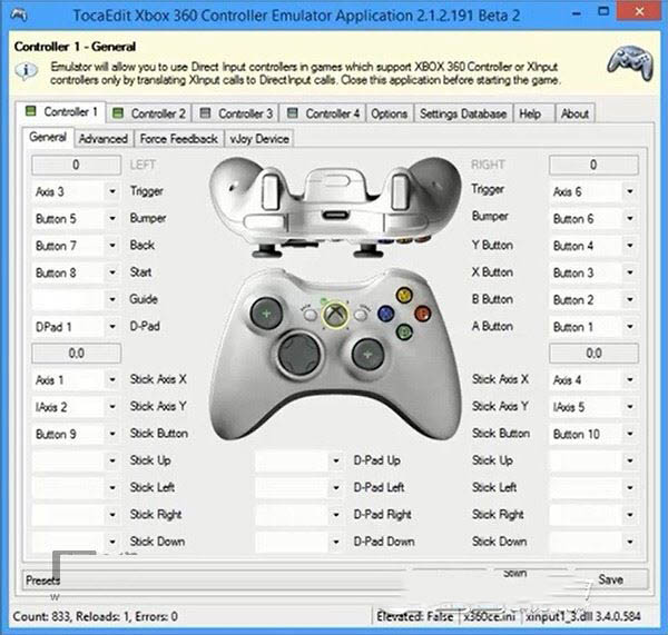 如果玩家需要将Xbox One手柄模拟为Xbox 360设备,需要单独配置XboxGamePad_1.0\x360CE目录下的x360ce.exe主程序。