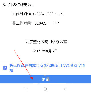 2、勾选就诊须知,点击“确定”。