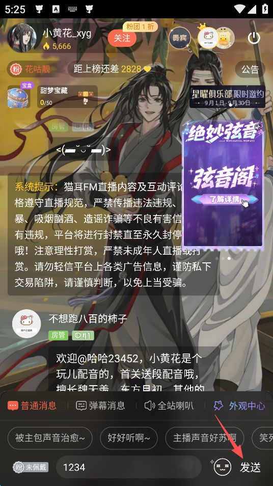 3、如果想听直播的话,点击直播,里面有海量的声优主播等着你。