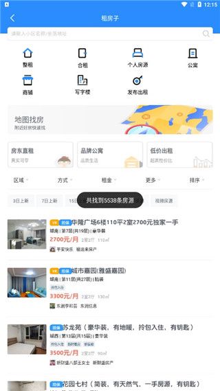 4、进入租房,这里可以进行合租、整租,租公寓等;