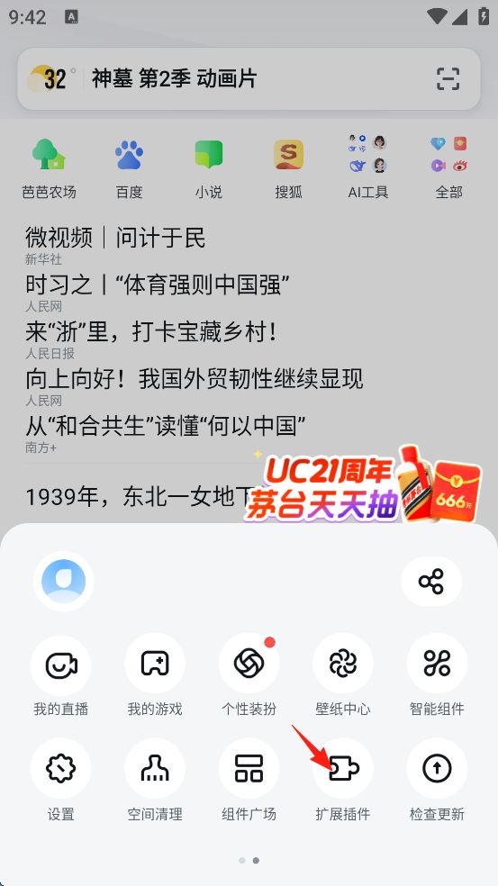 UC浏览器app如何安装扩展插件