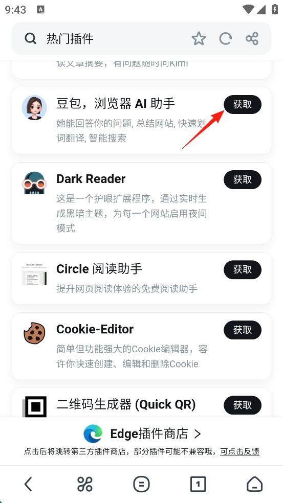 9、随便找到一网页,点击屏幕右侧的“豆包”头像,启用插件。