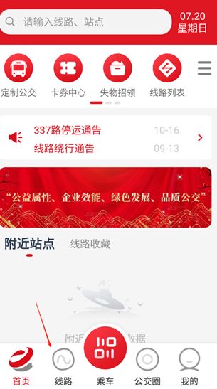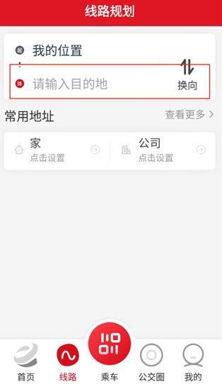 1、打开应用后点击线路查询功能,进入公交路线搜索界面。
