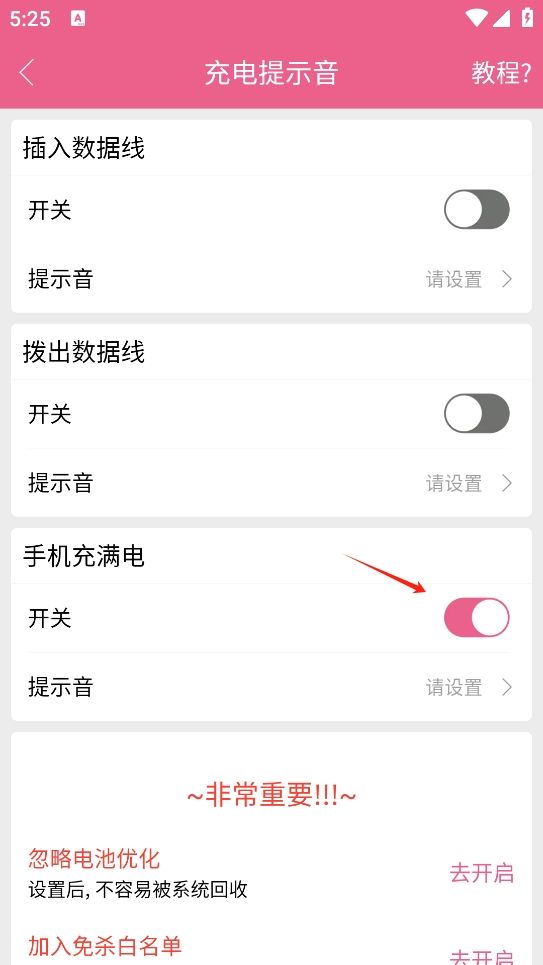 2、然后在手机充满电一栏点击关掉,保存设置就可以了。
