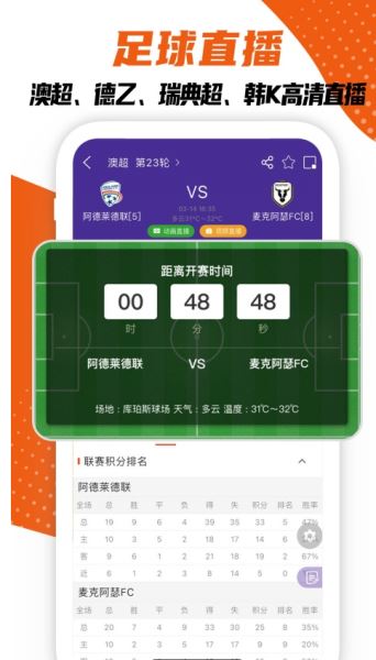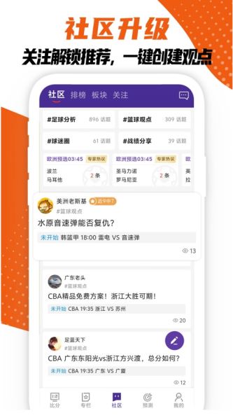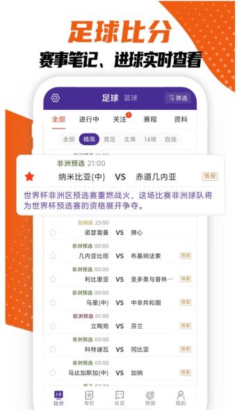 随时随地看足球/篮球比分直播,关注更可获取即时比分推送,方便!