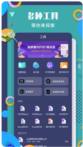 珠穆朗玛PDF阅读器APP是一款专注于PDF文档处理与格式转换的智能办公软件。其核心定位是满足用户在不同场景下对PDF文件的阅读、编辑、转换及管理需求,覆盖学术研究、商务办公、日常学习等多个领域。它以简洁的操作界面、强大的功能体系和稳定的性能表现,成为用户处理PDF文档的优选工具。
