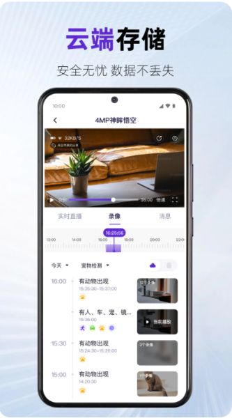 - 影像回放:云端或本地存储,按事件或时间快速回看