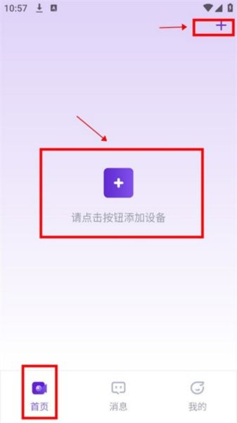 1.登入软件后在【首页】点击中间的+号按钮或是右上角+号添加设备