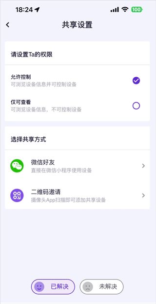 您作为设备的所有者,设备分享功能允许您将设备的控制/查看权限授权给其他用户,同时您可随时收回此权限。设备具体操作如下: