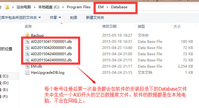 软件同步的网站订单和客户资料数据存放在安装目录的Database文件夹下的数据库中,如下图: