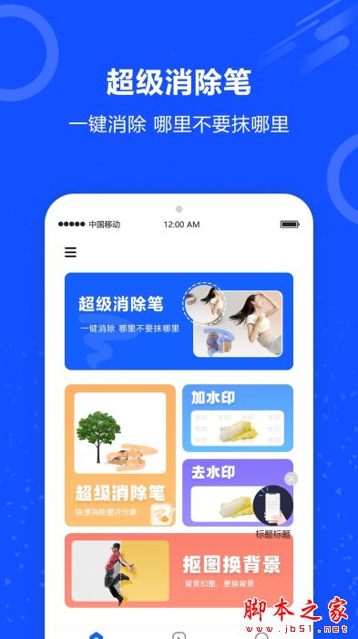 图片擦除笔手机端使用的图片处理软件,该软件支持擦除图片上的水印和不需要的物体,还支持自动抠图功能,界面简洁,易于上手,欢迎需要的朋友下载使用。