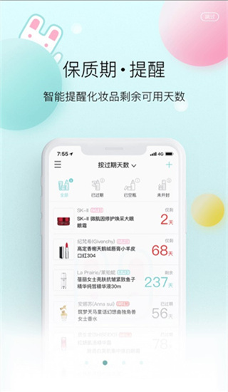 独家拥有60万条化妆品数据,让你轻松一扫加入管理清单让每一件美妆效期轻松管理。当添加的产品进入保质预警期会自动提醒您,再也不用担心化妆品过期带来的危害。