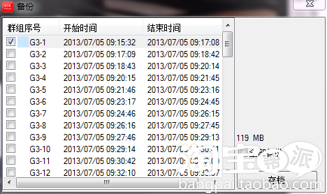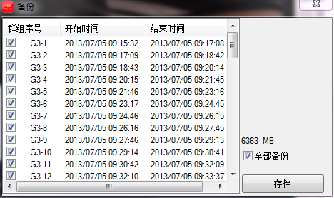 如果要想保存某一段视频,就在“群组序号”前勾选你要导出的影片,如果想全部导出,则在右侧“全部备份”前打勾全选,如下图所示: