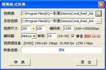 视频文件添加成功后,视频窗管理区会显示当前视频的一些参数,如视频文件的名称及视频的格式、视频尺寸、视屏文件的大小、视频的长度等,用户可以设置视频是否静音、音量及拉伸比例
