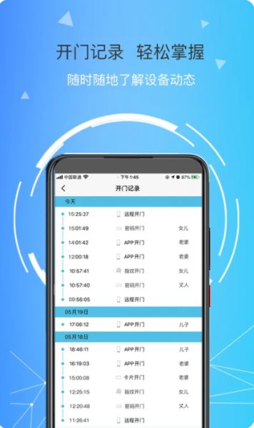 1、随时查看详细的记录信息,知晓每一次的开关门数据。