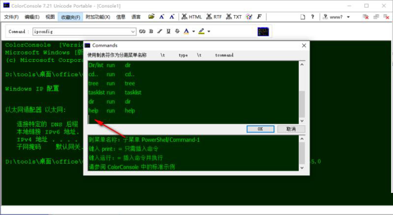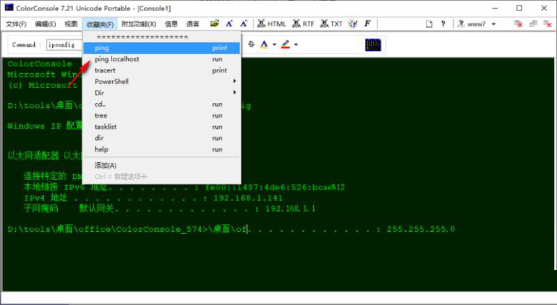 2、内置ping/tracert/tree/cd/add等常用命令,支持自定义添加常用命令;