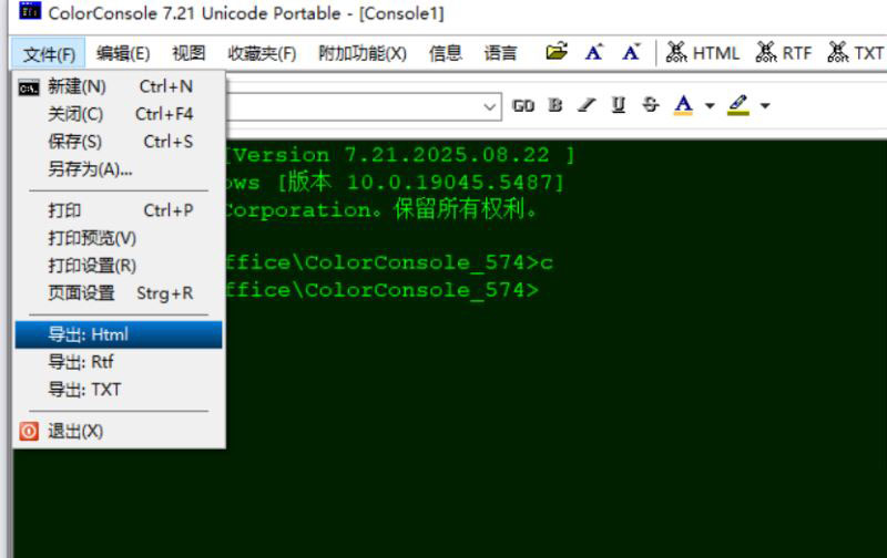3、ColorConsole支持直接导出到HTML/RTF,支持打印、打印设置;